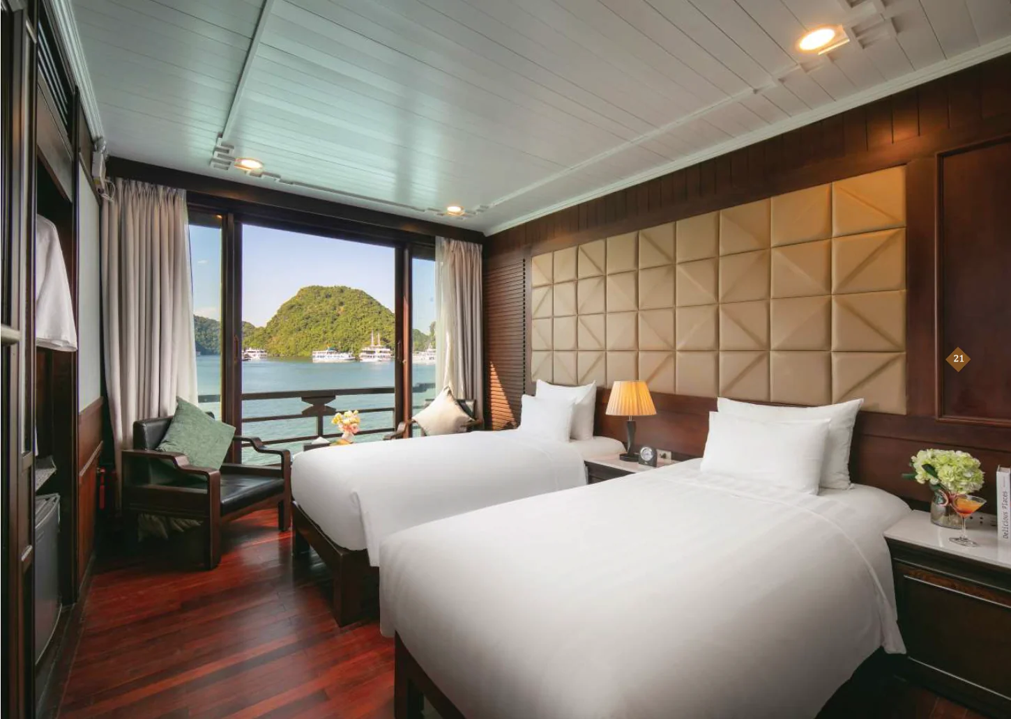 You will be swimming off the boat, learning to make fresh Vietnamese spring rolls during a cooking demonstration, and watching the sun drop behind the limestone pillars with a cold drink in hand during the sunset party. It’s active during the day, social at night, and scenic 24/7.